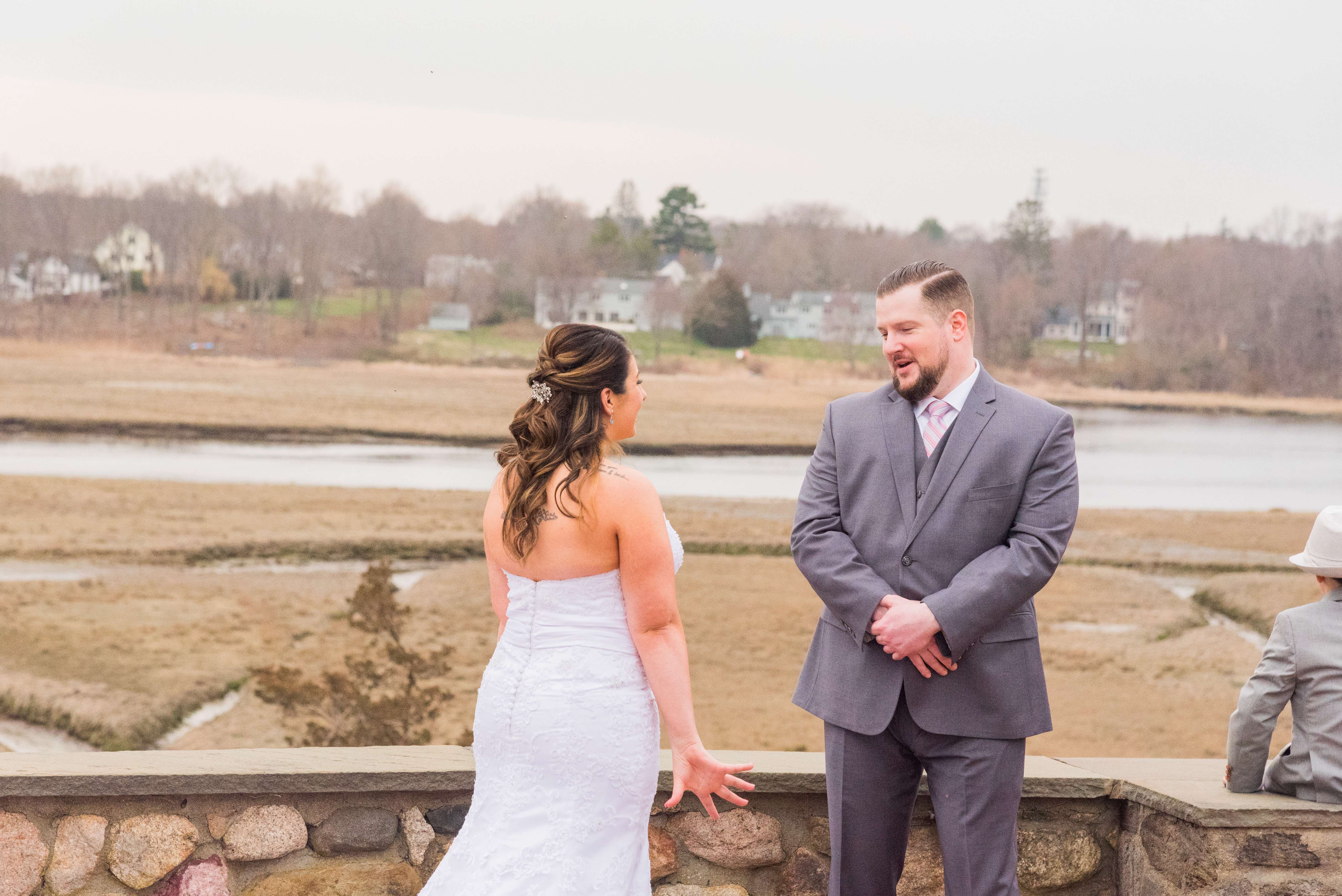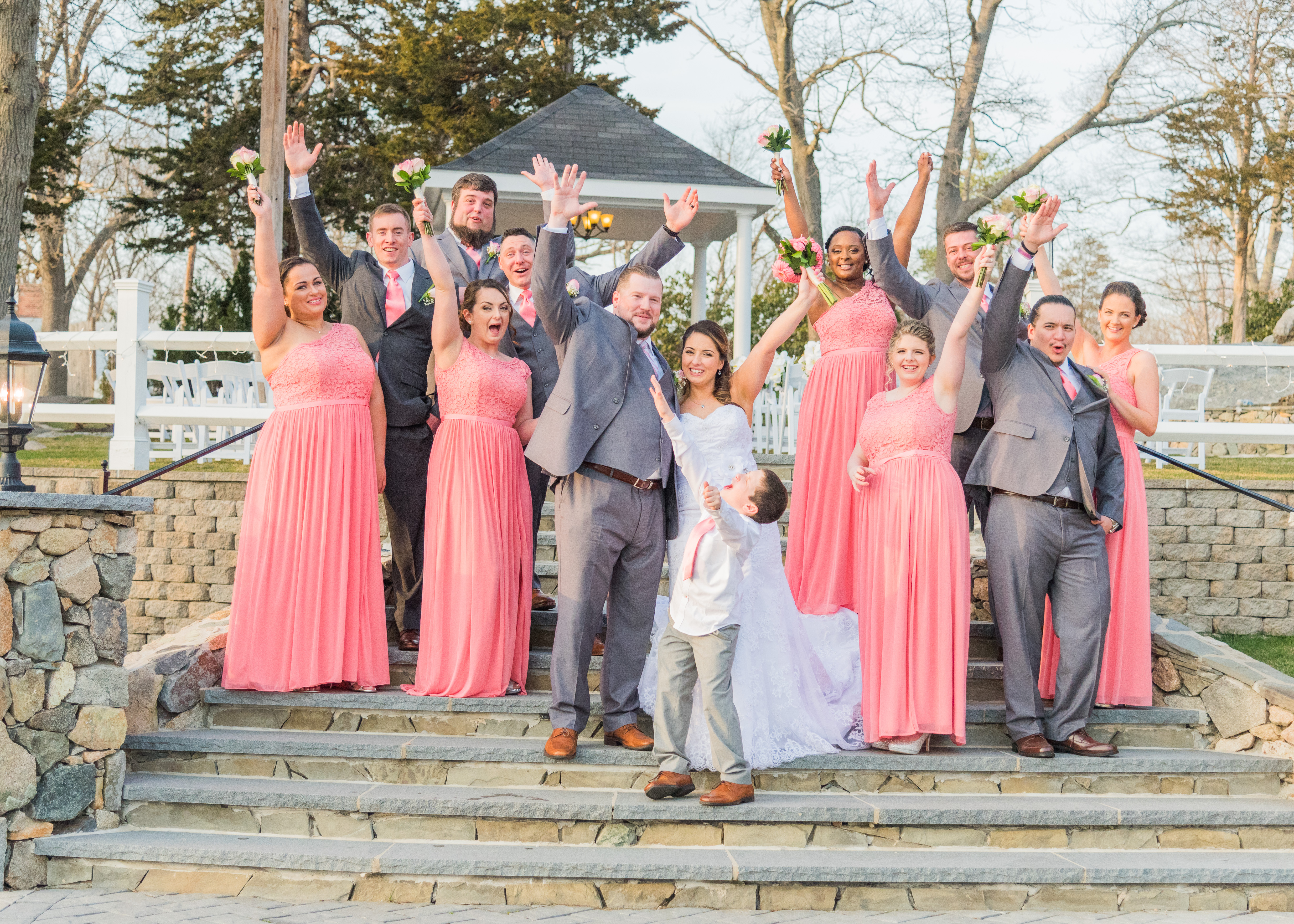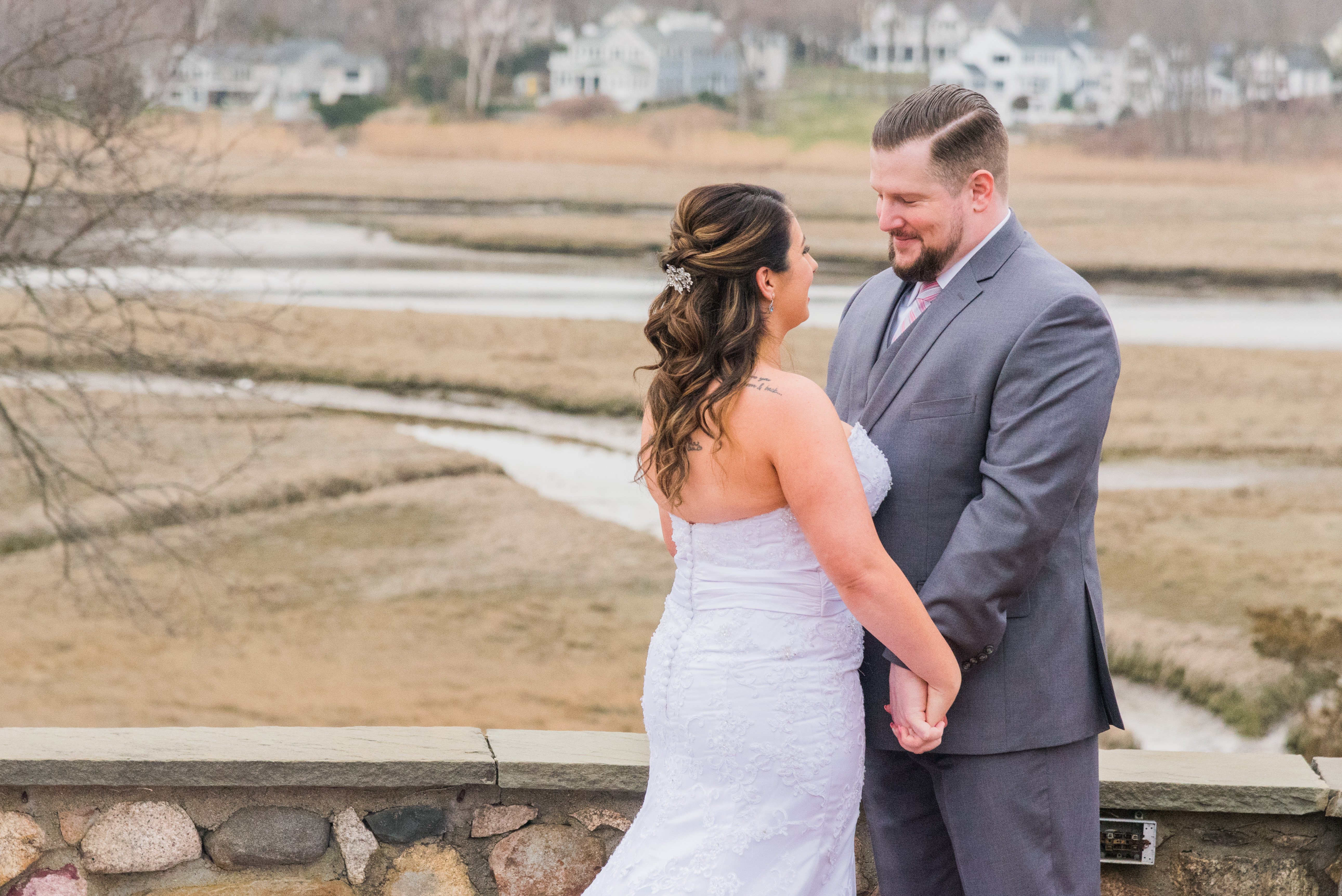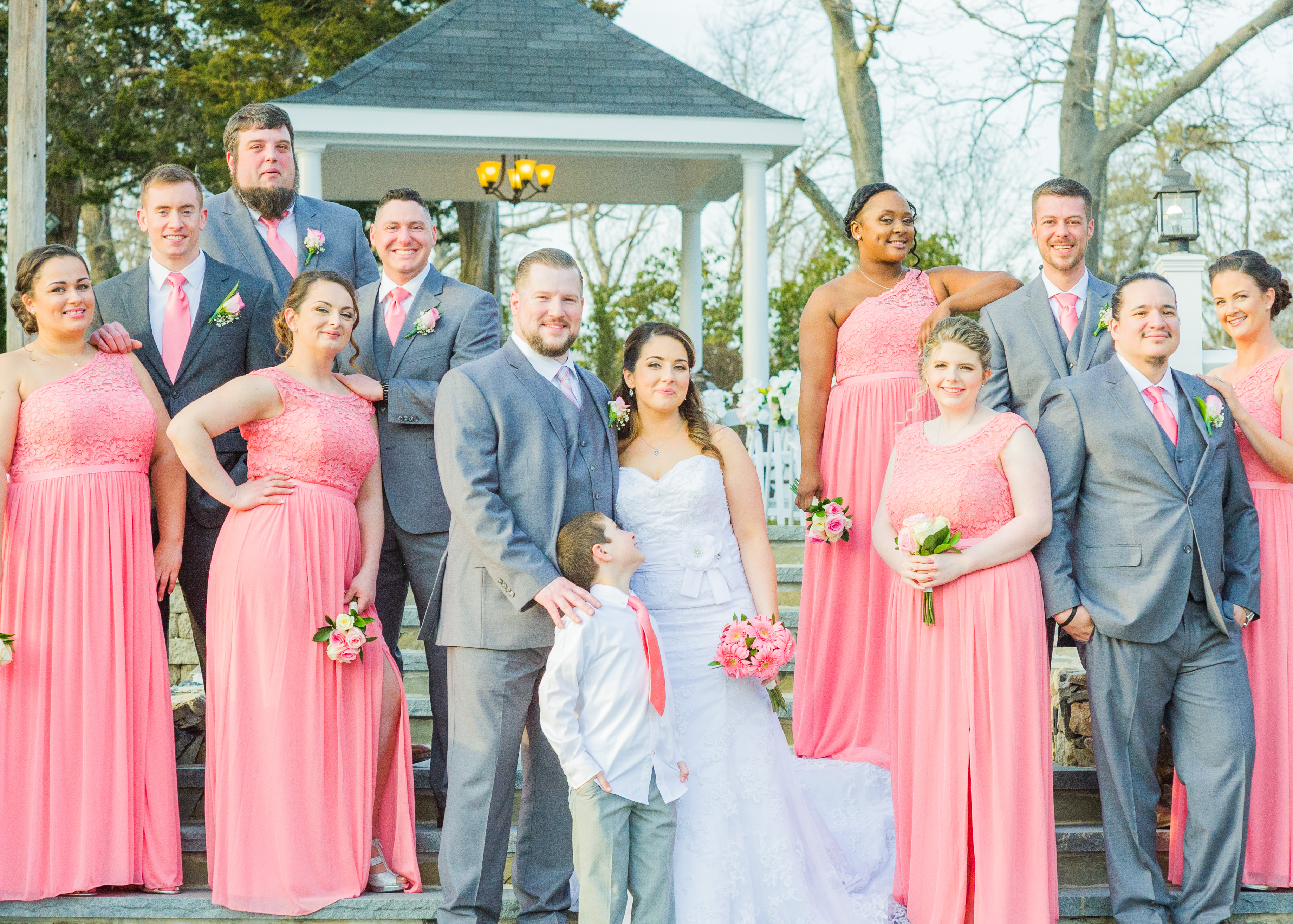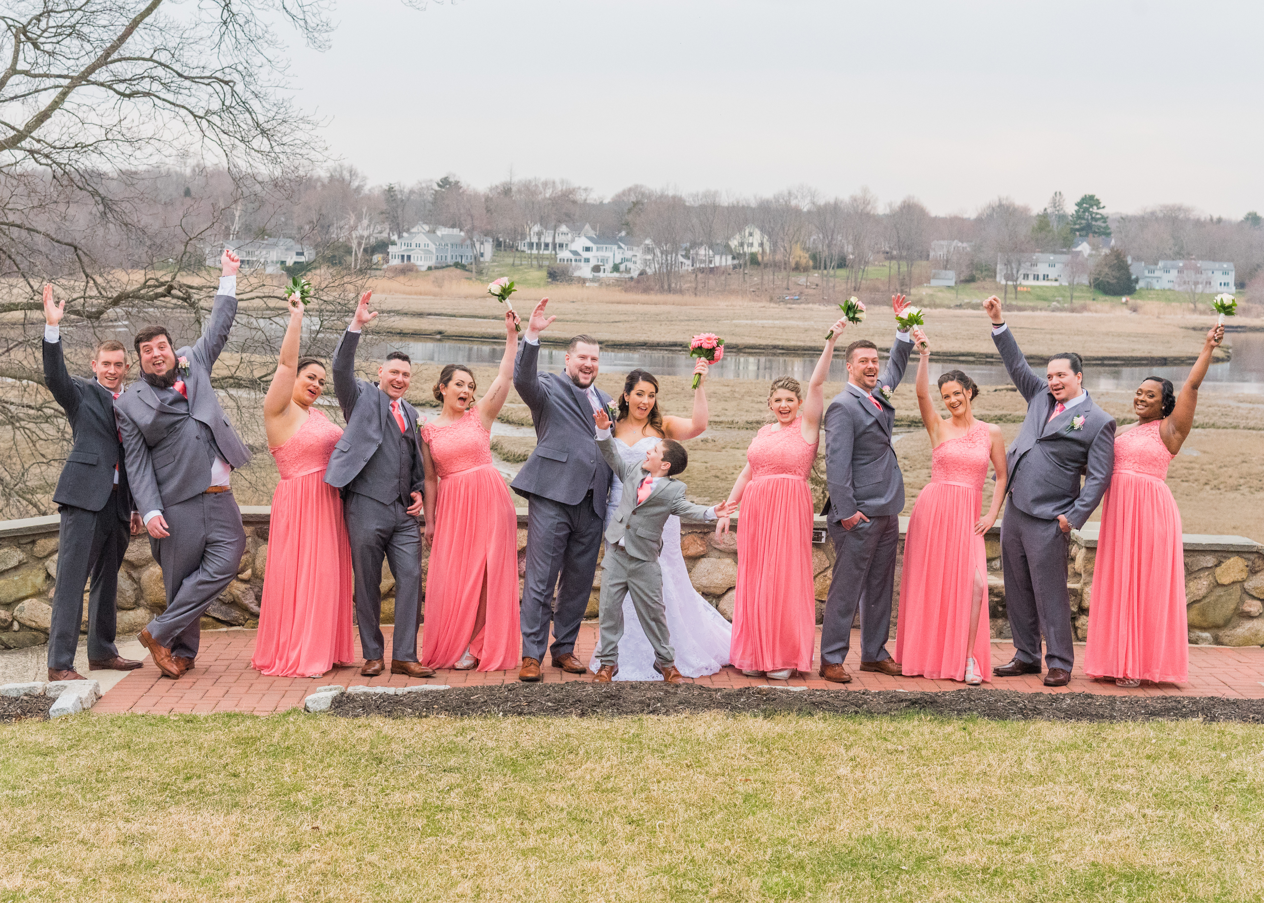 Kayla and Ian tied the knot at River Club in Scituate Massachusetts. The the wrap around deck and the reception room décor completely matched Kayla and Ian’s laid back but refined style. They incorporated nautical elements into the day with pops of pink and gray creating a timeless look.